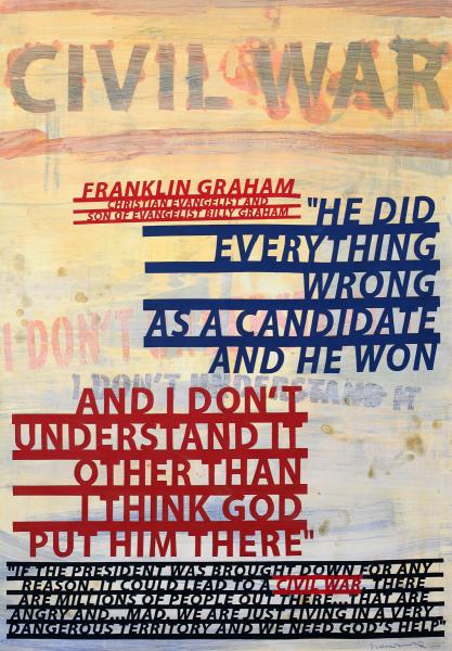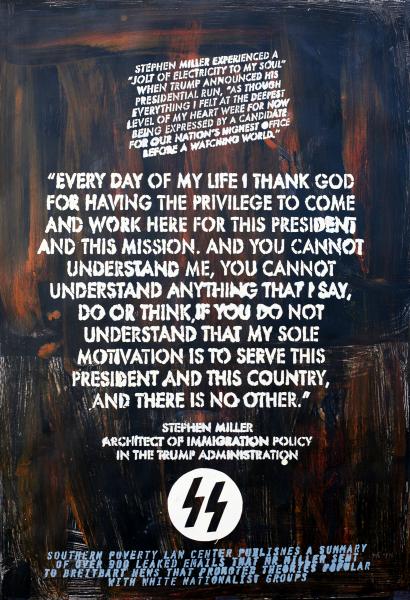 WARD SCHUMAKER is an artist known in particular for his hand-painted, one-of-a-kind books. An unintended and fortuitous viewing of one––a collection of quotes from the mouth of Donald Trump––resulted in the publication of Hate Is What We Need, available from Chronicle Books. Schumaker is represented by the Jack Fischer Gallery in San Francisco.