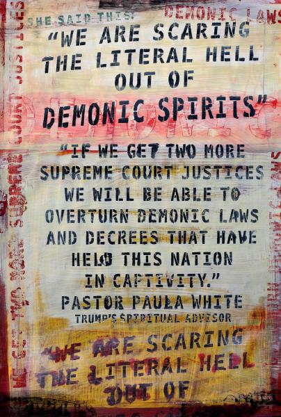 In the year 2020, is it still comforting to be assured that God is on our side? Do we sleep better, knowing God put Trump in the White House? That he is the Chosen One? That the people working for him were brought to their position by God’s providence? Or that Trump has a spiritual advisor capable of scaring the hell out of demonic spirits?
