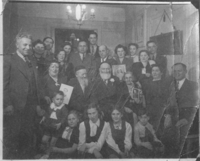 (A Chametzky family photograph, Brooklyn, NY, 1942. Jules Chametzky, fourteen years old, is standing in the back row, second from the right, next to his father and behind his mother.)