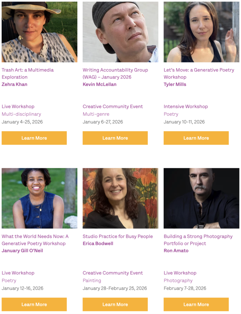 In case you missed it: our annual Silent Auction is happening now! We’ll be spotlighting one of our offerings in detail every day. Today’s spotlight is on a virtual Fine Arts Work Center workshop of your choice: