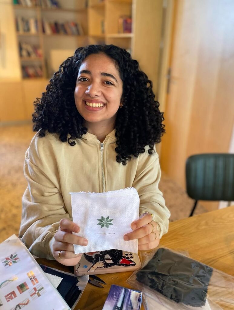 Kinda, a 19-year-old girl from the Dhiesha refugee camp, the youngest member of our community, told me Tatreez helped her feel calmer and more present, and gave her something to look forward to everyday. Before joining her first circle, she had been looking for a place where she could regain a sense of belonging: Kinda’s grandmother, who is physically unable to teach her Tatreez, was deeply proud when she saw her stitching.