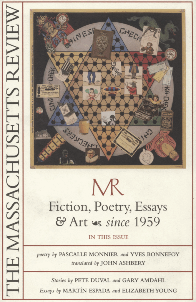 Except, of course, that there is more, much more. For instance, the final installment of multipart pieces from Gary Amdahl and Elizabeth Young, two of our favorite authors. In addition to two by Ashbery, we’ve also got a slew of other translations for you, writers—Eugene Dubnov, Federico Falco, Yehudit Heller, Geneviève Piron, Saeb, Anna Lidia Vega Serova—from across the globe. And, of course, we bring it home as well: two stunning pieces, a poem by Adrian C. Louis and an essay by Martín Espada, remind us that for many the Red Sox, in every essential and ultimately unforeseeable way, may simply be life itself.