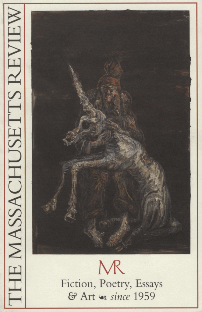 In the present issue, nearly all of these stories, essays, and poems place their wagers in or on the backslash between one place and another. Alicia Ostriker’s “Cinco de Mayo,” for example, Mexico sprouts forth in a Nueva York green world; elsewhere, Naira Kuzmich meditates on loss, with a translatio that carries her Armenian across and behind English lines. In Nil Santiáñez’s exegesis of modernist war writing (the first installment of a two-parter), the backslash divides and articulates soldierly telling from showing a century ago, on either side of the Maginot line. An excerpt from Igiaba Scego’s Adua (translated by Frederika Randall, who recently brought us Giacomo Sartori) portrays two generations of Somali immigrants in Italy, with their distance from home measured by triangulation, using a Bernini elephant and obelisk as focal points. The art fantastique of Allison Schulnik melts and morphs, troubling conventions of mode and media. Contributing editor Peter Bush trades on another triangle, sending us from the UK three translations of stories by the Cuban poet, translator, and film critic Jorge Yglesias. Aatif Rashid tells a tragic tale of Ottoman conquest in Hungary, whereas Kenan Orhan traces fault lines across the border war between Turkey and Syria today. Closer to home, a poem from Kathleen Kelley bridges time and distance in crossing to the Cape, while characters by Colin Fleming come of age way out here in the wilds of Western Mass., and hipster Brion Dulac entombs an unknown hitchhiker in his truly uncommon commune. As is his wont, Bob Dow sums it all up, sending it sailing in a rumination on the border between skull, mind, and memory.