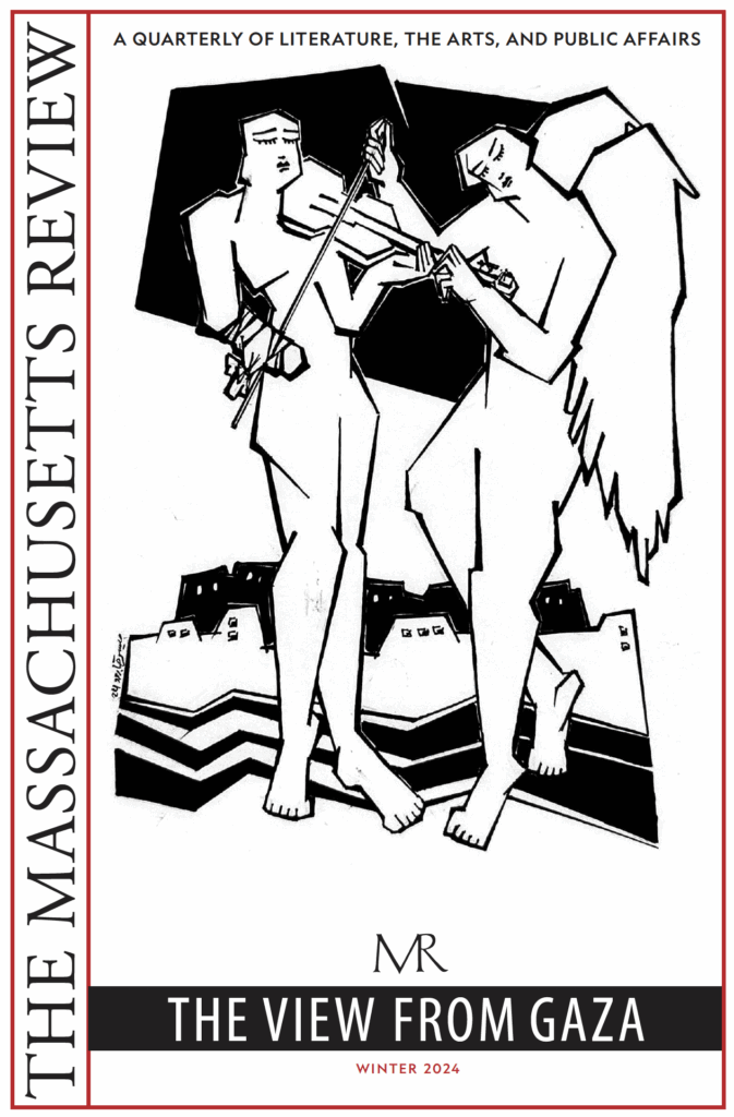 This issue of the Massachusetts Review offers a collective voice, a chorus of Palestinian voices demonstrating the determination to write in spite of the rumbling of war planes, undeterred by the bombs falling from the sky, and in defiance of unspeakable hardships and intolerable living conditions. These voices speak to us from the heart and document the atrocities that seventy-six years of history have wrought. They offer us an unflinching look at the unbearable pain and wounds that have afflicted Palestinians in the Occupied Territories as well as the diaspora.