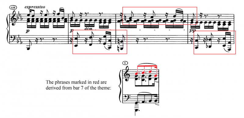 [15] Actually, fragments of this passage borrow the melodic contour of bar 7 of the theme, but the context is so different that this thematic link is nearly unrecognisable: